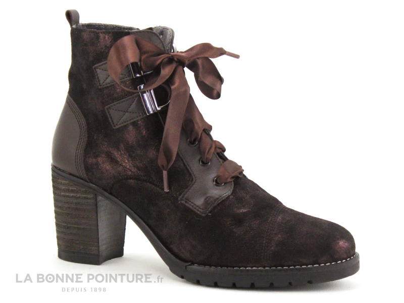 Chaussures Femme mode et de grande qualité, les bottines à talon haut marron métal Geo Reino Calabus moka !