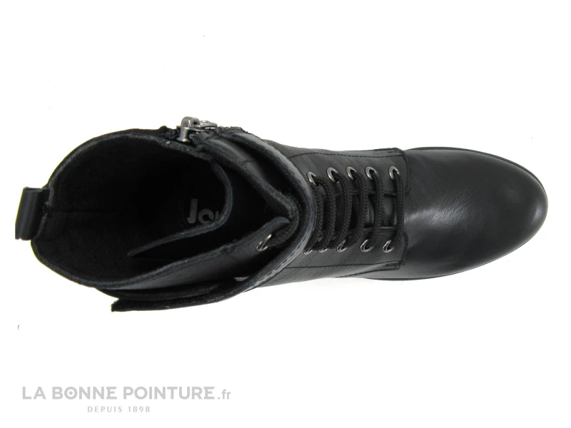 Ajustables grâce au lacet noir qui se faufile à travers 9 oeillets métal, les boots noires Femme Jordana se ferment en un clin d’oeil avec le zip latéral.