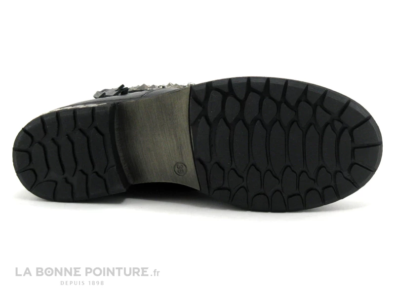 La semelle de marche des boots Shzar est souple, avec un talon épais d’environ 4 cm orné de losange argentés.