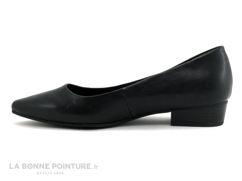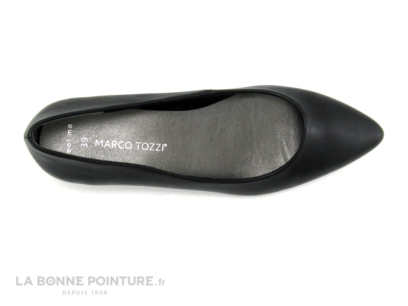 Ces escarpins sont noirs à l’aspect légèrement veiné, avec un bout pointu qui caractérise la chaussure Femme Marco Tozzi.