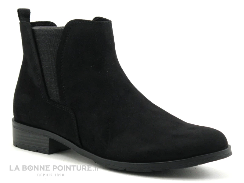 Les 2 élastiques sur les côtés permettent d’enfiler facilement la bottine Chelsea noire Marco Tozzi 25321.