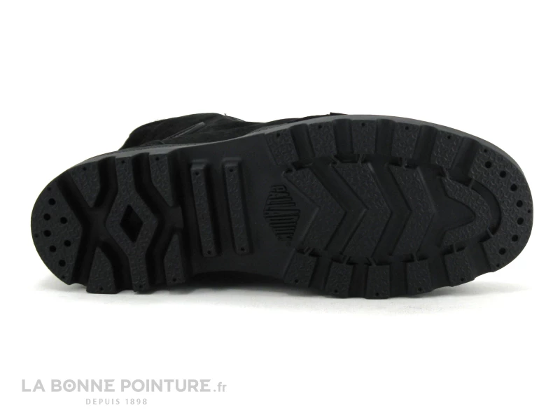 La semelle de marche du bottillon Femme Palladium Pampa est épaisse avec un renfort sur la pointe, équipée de crampons pour une bonne adhérence.