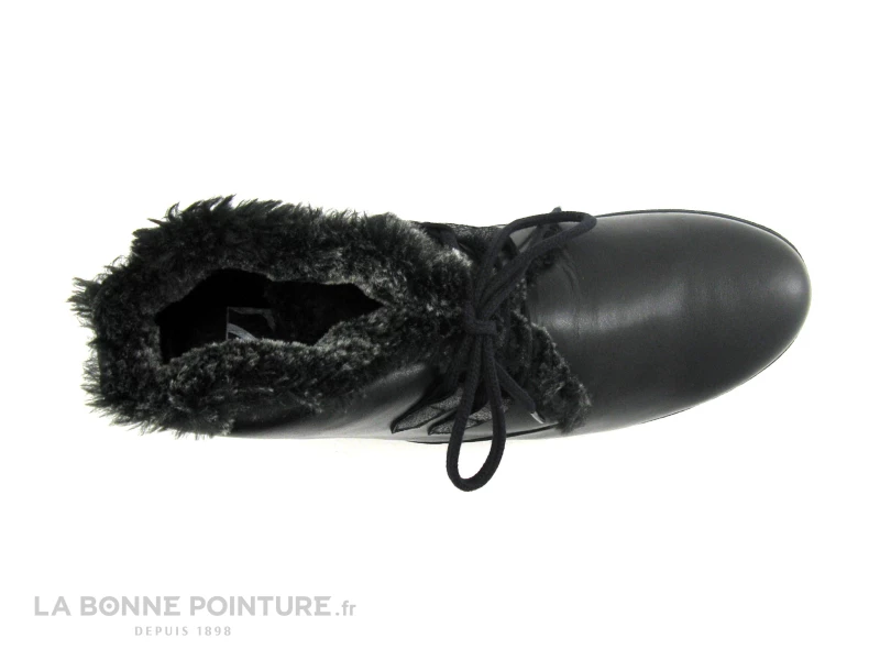 Ces boots Femme sont en cuir souple noir, avec une pointe arrondie et une encolure en fourrure très actuelle.