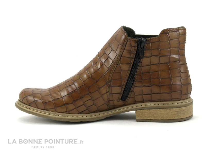 Qu’elles sont jolies avec leur aspect croco, les bottines Femme marron clair Rieker Z4994-25 !
