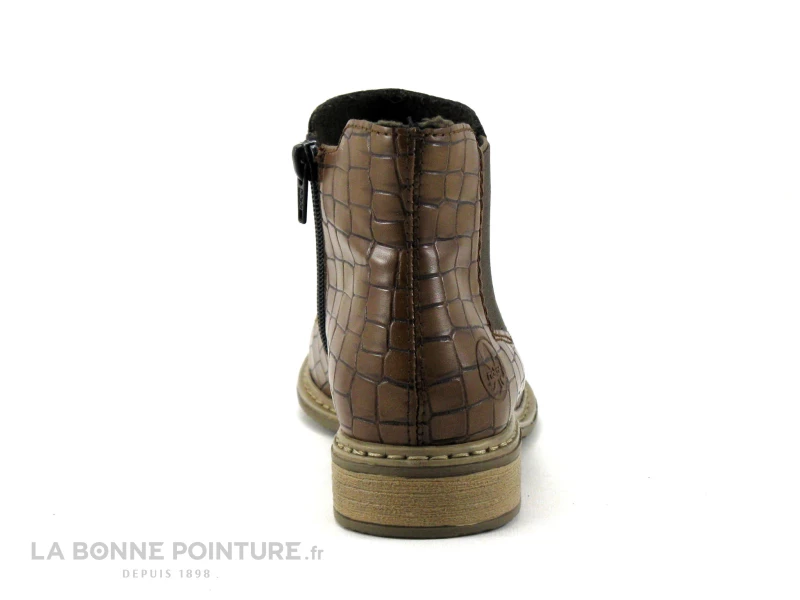 La fermeture éclair à l’opposé permet de fermer facilement les boots marron croco Rieker Antistress Z4994-25.