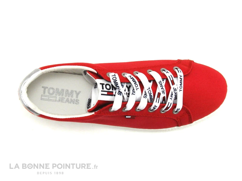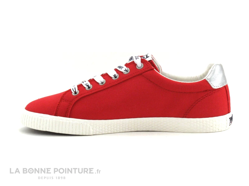 Les sneakers femme en toile rouge Tommy Jeans EN0EN00125 par Tommy Hilfiger, des baskets branchées pour la saison estivale au meilleur prix !
