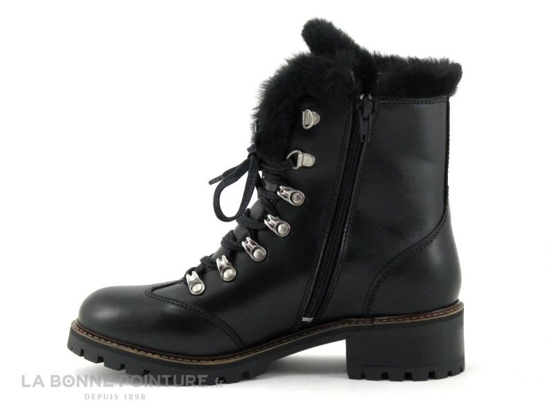 Ces boots hiver Femme Hooper sont en cuir lisse noir de grande qualité, ornées d’un liseré en peluche noire sur le pourtour.