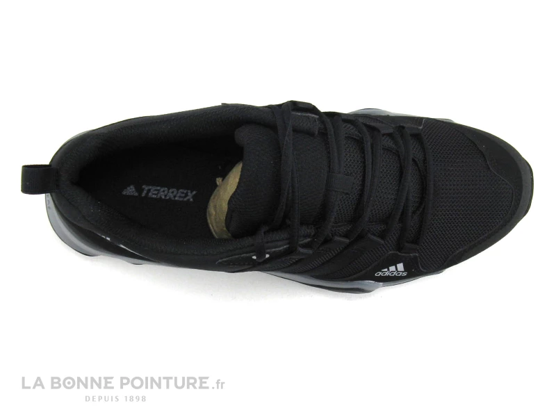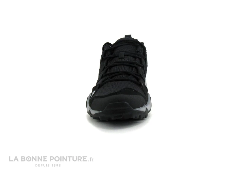 Cette chaussure de sport plein air Adidas Terrex combine textile respirant et matières synthétiques noirs.