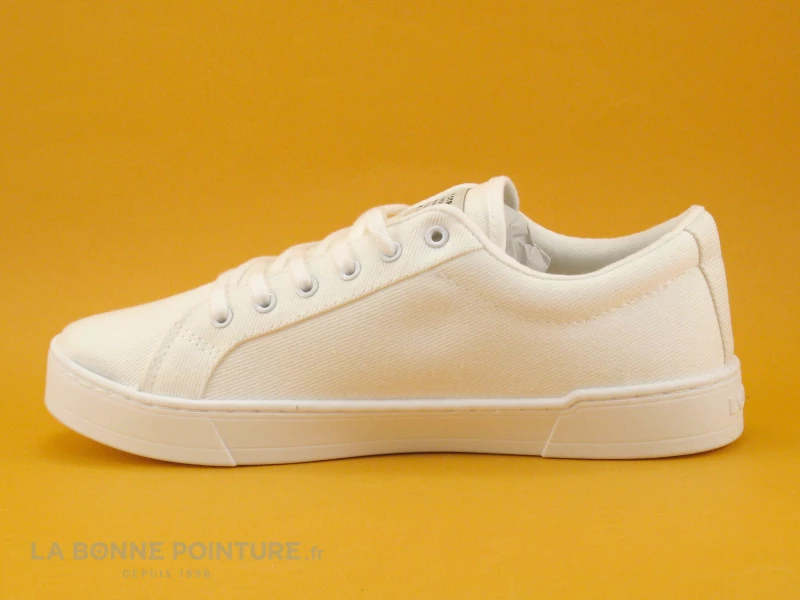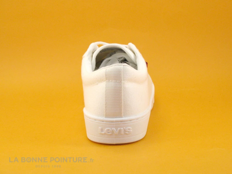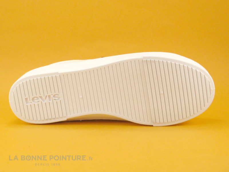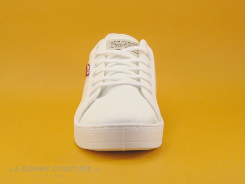 Vous fermerez vos tennis blanches Levi’s avec un lacet plat blanc traversant 6 oeillets.