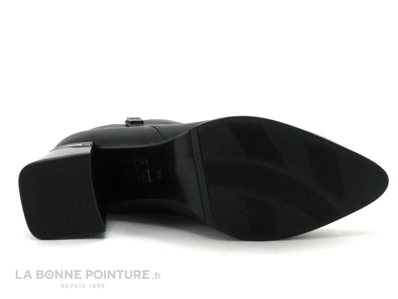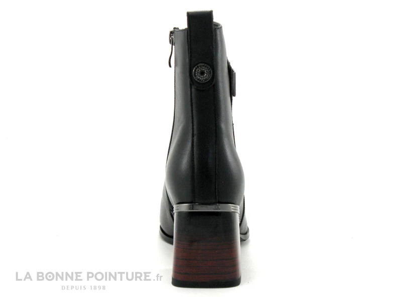 Un style bien affirmé pour ces superbes bottines Femme avec talon original Métamorf’Ose Macadamia en cuir noir !