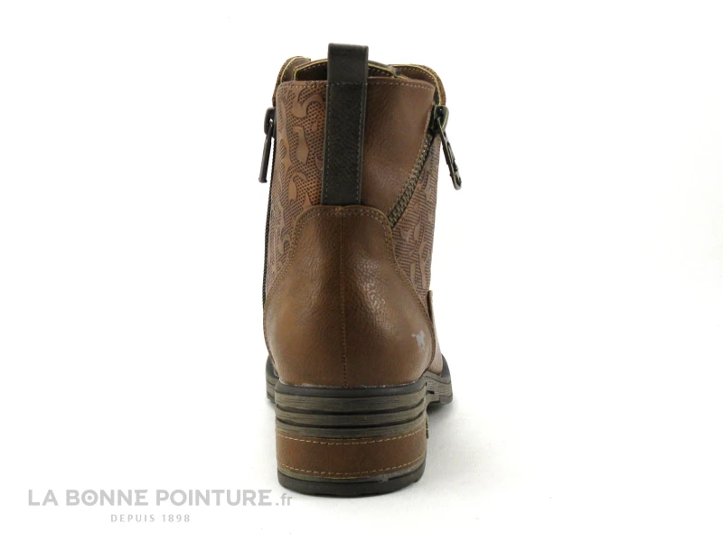 Un petit zip factice orne le côté externe des boots Femme Mustang, tandis que l’autre fermeture éclair à l’opposé permet de fermer facilement la chaussure.