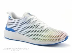 Les sneakers blanches et multicolores Rieker Revolution 40101-90 se ferment avec un lacet blanc traversant 5 oeillets.
