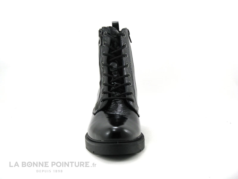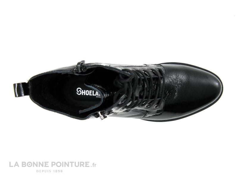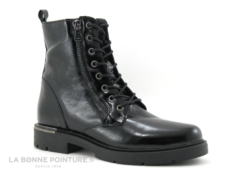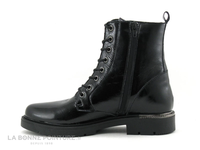 Cette chaussure montante Femme est donc en cuir noir verni, pour une petite touche de chic et de brillance pile dans la tendance…