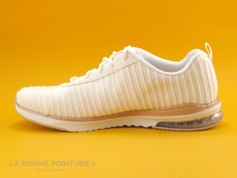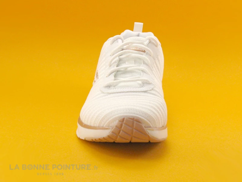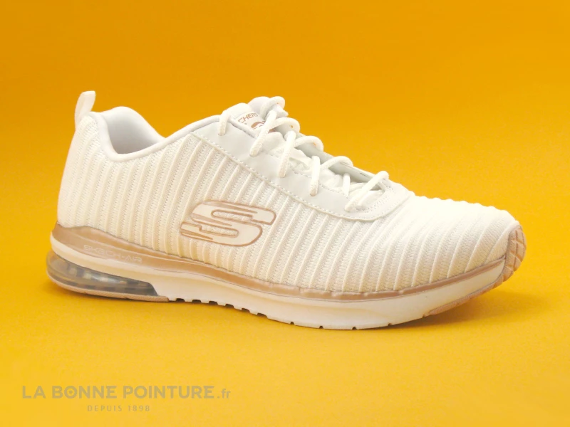 La semelle de marche Skech-Air bicolore blanche et rose gold est légère et flexible, avec un coussinet translucide. Cette semelle offre un très bon amorti.