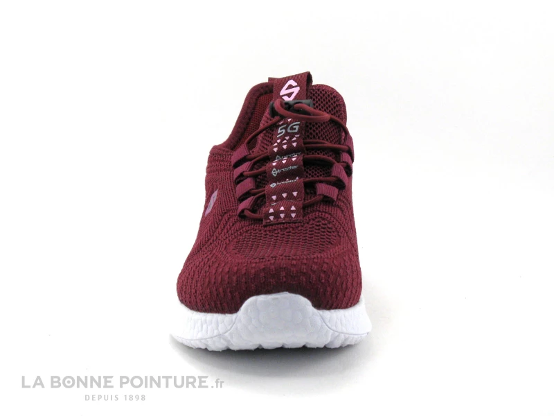 Cette basket slip-on Femme petit prix est en textile maille bordeaux / lie de vin.