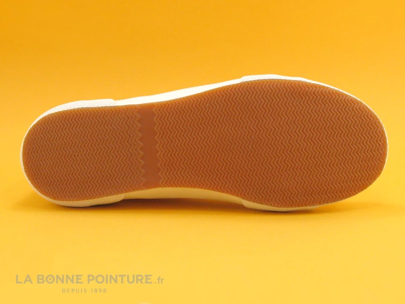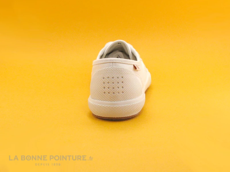 Cette basket mode TBS Bullits est en toile blanc cassé, avec des renforts en caoutchouc aux extrémités.